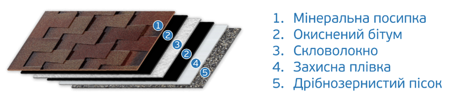 - Матеріал: Виготовлена на основі скловолокна, просоченого бітумом, що забезпечує довговічність і стійкість до погодних умов.