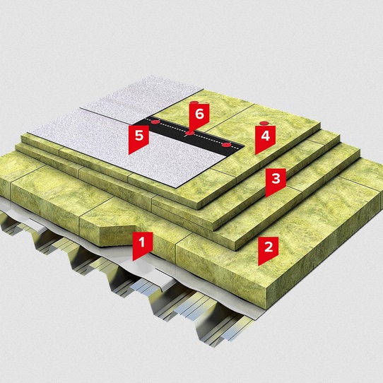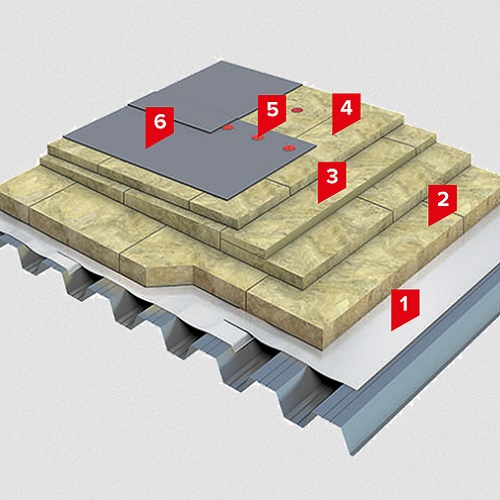 Утеплювач Техноруф В ЕКСТРА, застосовується при влаштуванні теплоізоляційного шару плоскої покрівлі.