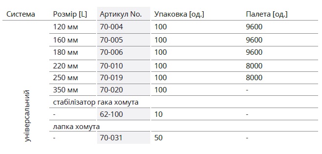 За інформацією, виробник пропонує ще хомути металеві. Однак, це замовна позиція.