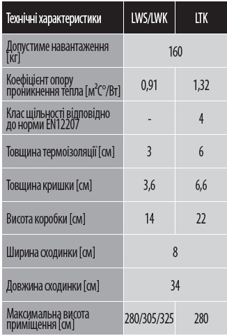 Технічні параметри сходів на горище Fakro LWS Plus-280