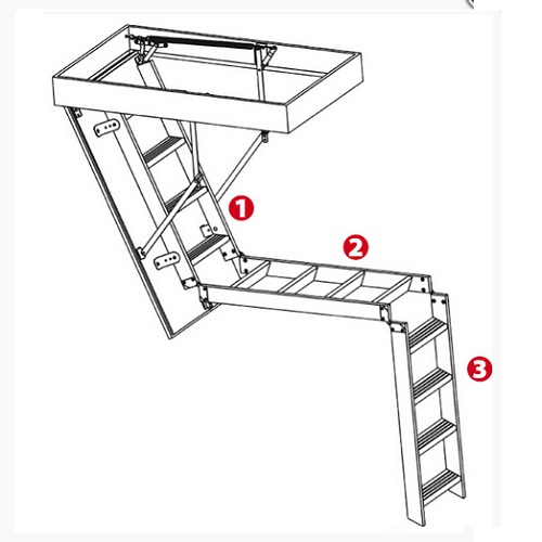 По суті, сходи горищні складані комбінована 3-х секційна з металевими напрямними та дерев’яними щаблями. ДВП білого кольору.