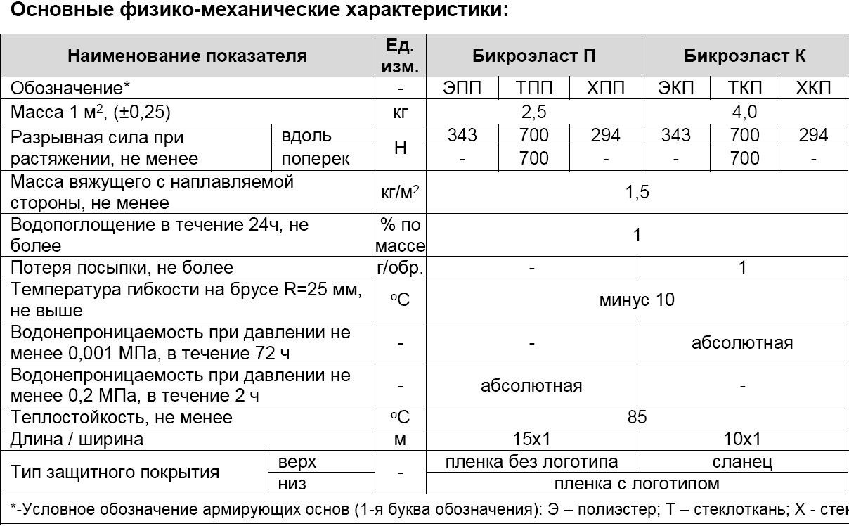 Для інформації, в асортименті є чотири типи матеріалу. А саме нижній шар, на основі склополотна ХПП, на основі полієстера ЕПП. У свою чергу, на неї (основу) з двох сторін наноситься високоякісне в’яжуче на основі модифікованого бітуму. І звичайно, верхній шар, з камінцевим посипанням ЕКП на поліестері, і ХКП на склополотні. Бікроеласт на сьогоднішній день один з небагатьох матеріалів, у виробництві якого використовується така технологія модифікації бітуму. Рулонний матеріал Бікроеласт вільно згинається при температурі до -10°С і стійкий до теплостійкості до +85°С. Технічні характеристики євроруберойду