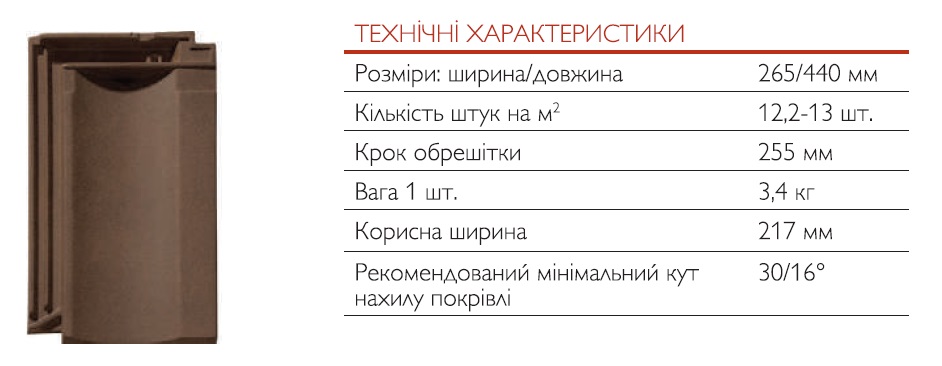 Черепиця виготовлена лише у Франції та Німеччині за найвищими внутрішніми стандартами цих країн.