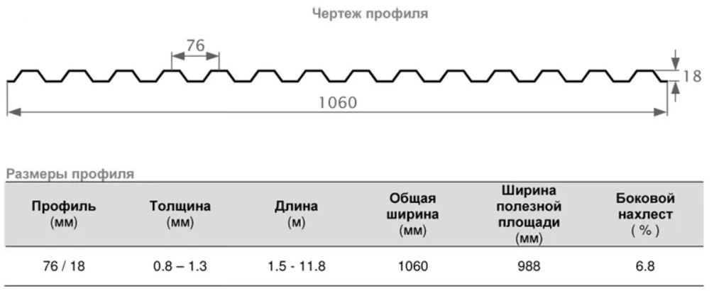 | Розмір листа, м | 1,06х3,0; 1,06х2,5 |