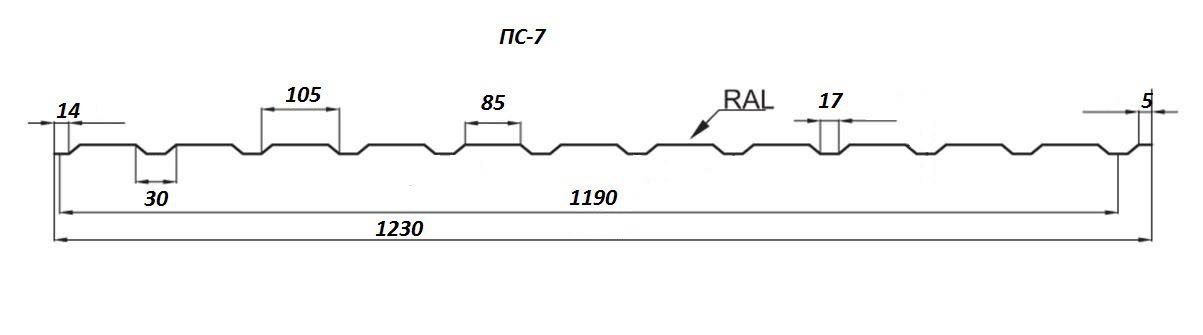 Головна сторінка » Інтернет-магазин “Буд Дах” » Профнастил ПС-7 матовий Китай 1190/1230, м2