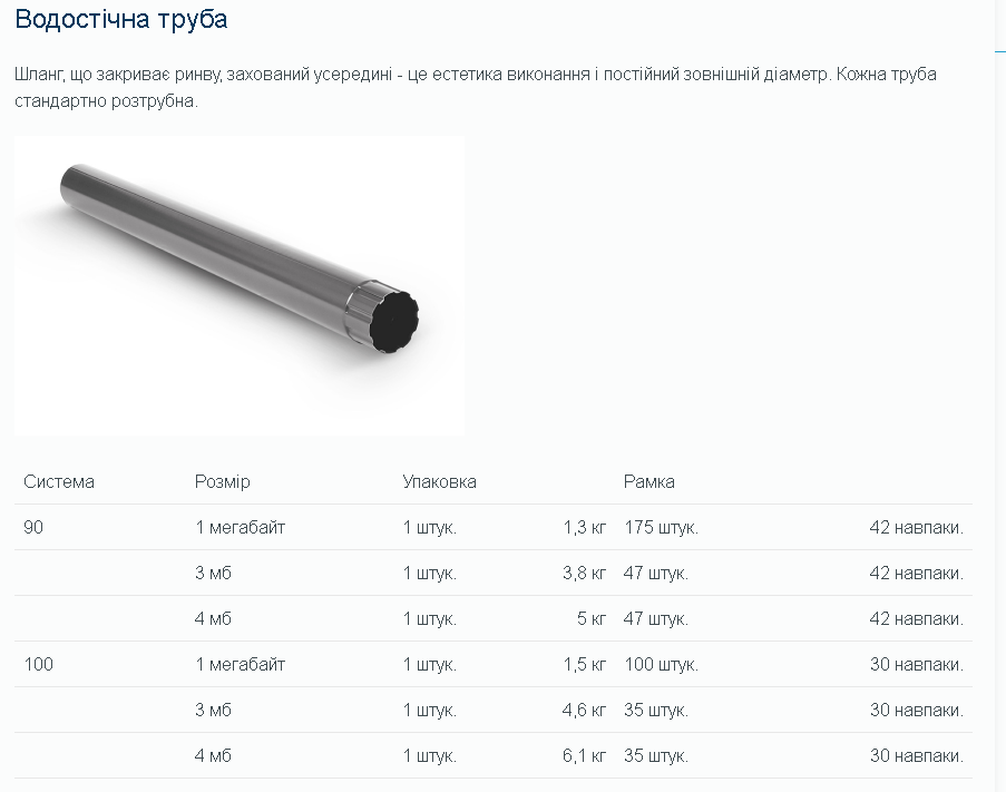 Довжина труби 1 и 3 метри дозволяє легко інтегрувати її в різні водостічні системи.