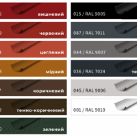 Кожен колір покрівельного матеріалу знайде схожий у широкій гамі кольорів, яка постійно доступна.